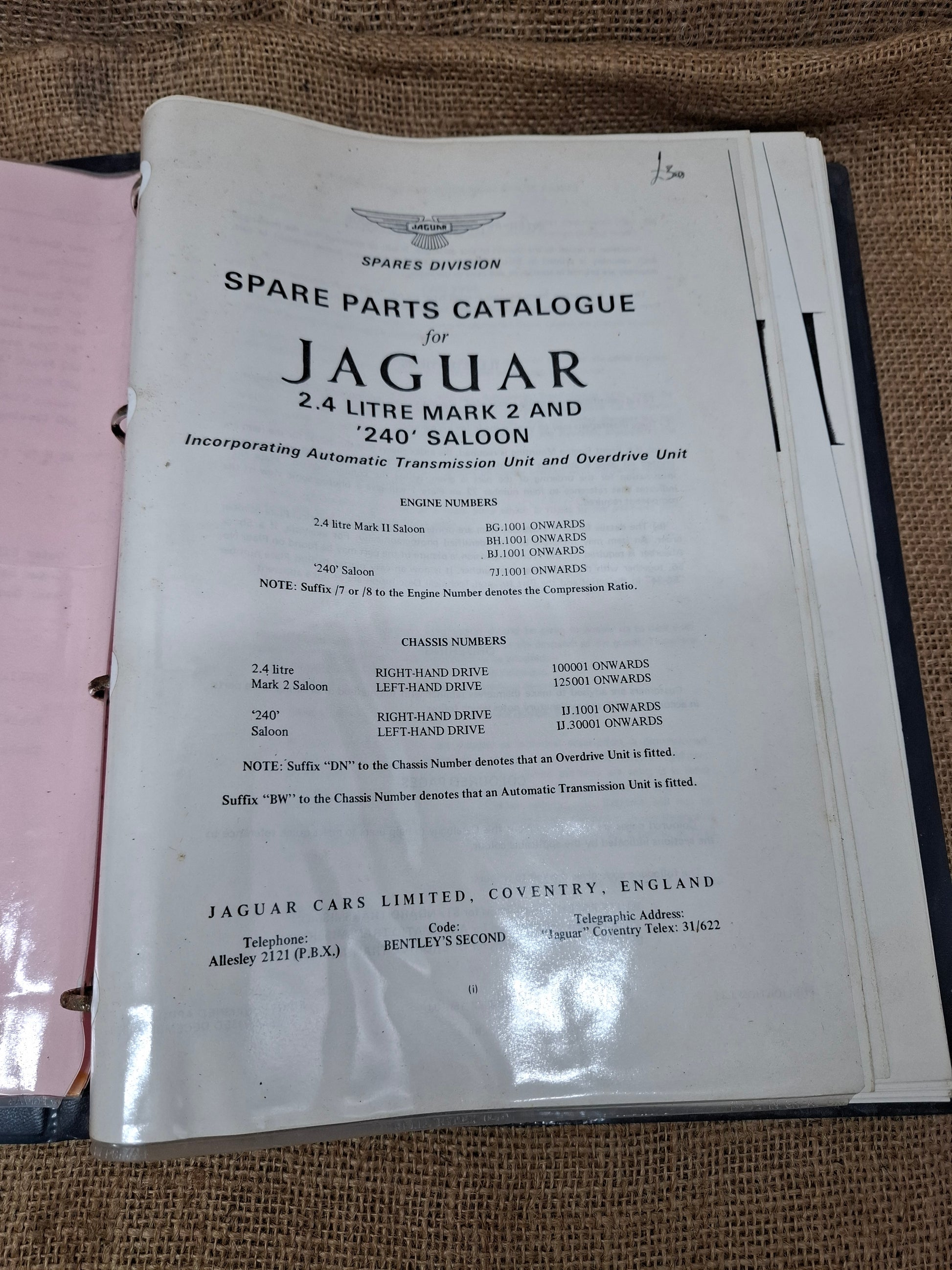 Parts Catalogue Jaguar 2.4 litre Mark 2