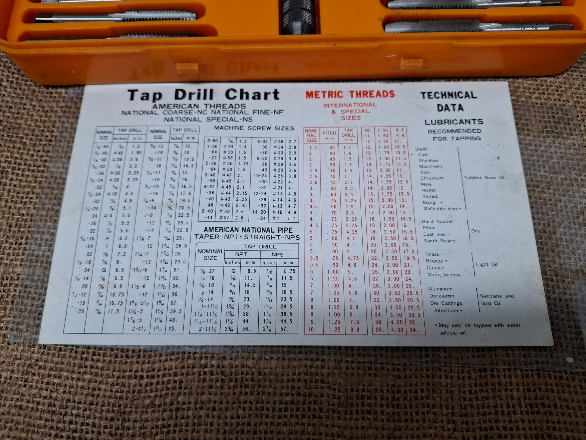 Tap and Die Set Metric and National Fine